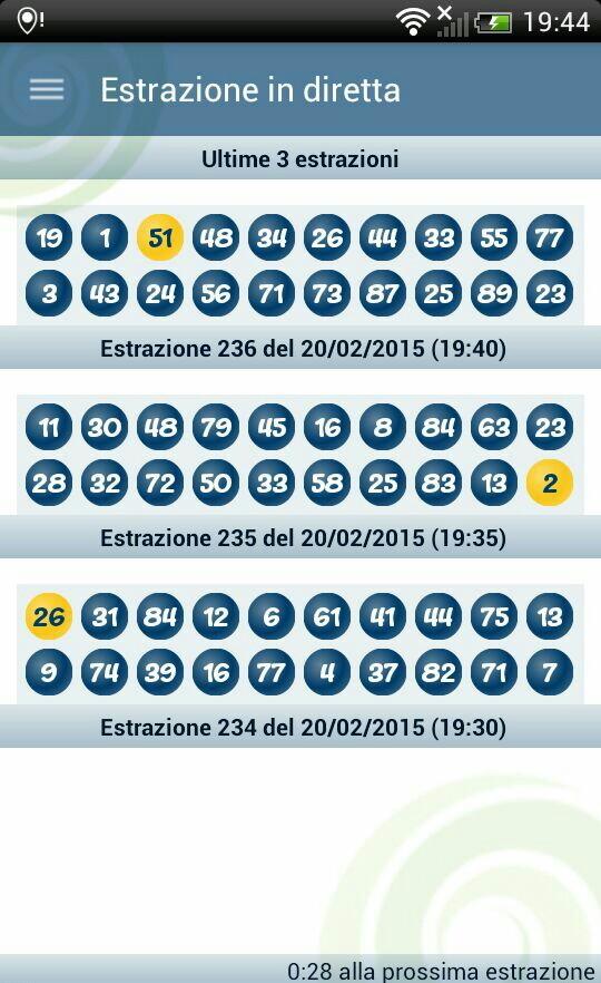 I risultati e le statistiche del gioco del lotto le estrazioni del gioco del lotto italiano si celebrano 3 volte alla settimana: 10 e lotto estrazioni ultima estrazione estrazione in tempo reale le estrazioni di oggi tutte le estrazioni archivio estrazioni. La prossima estrazione del lotto è il martedì, giovedì o sabato alle ore 20. Le ruote sono 10 ed è stata aggiunta l'undicesima ruota in concomitanza con l'inzio delle estrazioni elettro/meccaniche tramite le. I numeri dell'ultima estrazione del lotto, il commento all'ultima estrazione e i numeri ritardatari e frequenti del lotto.